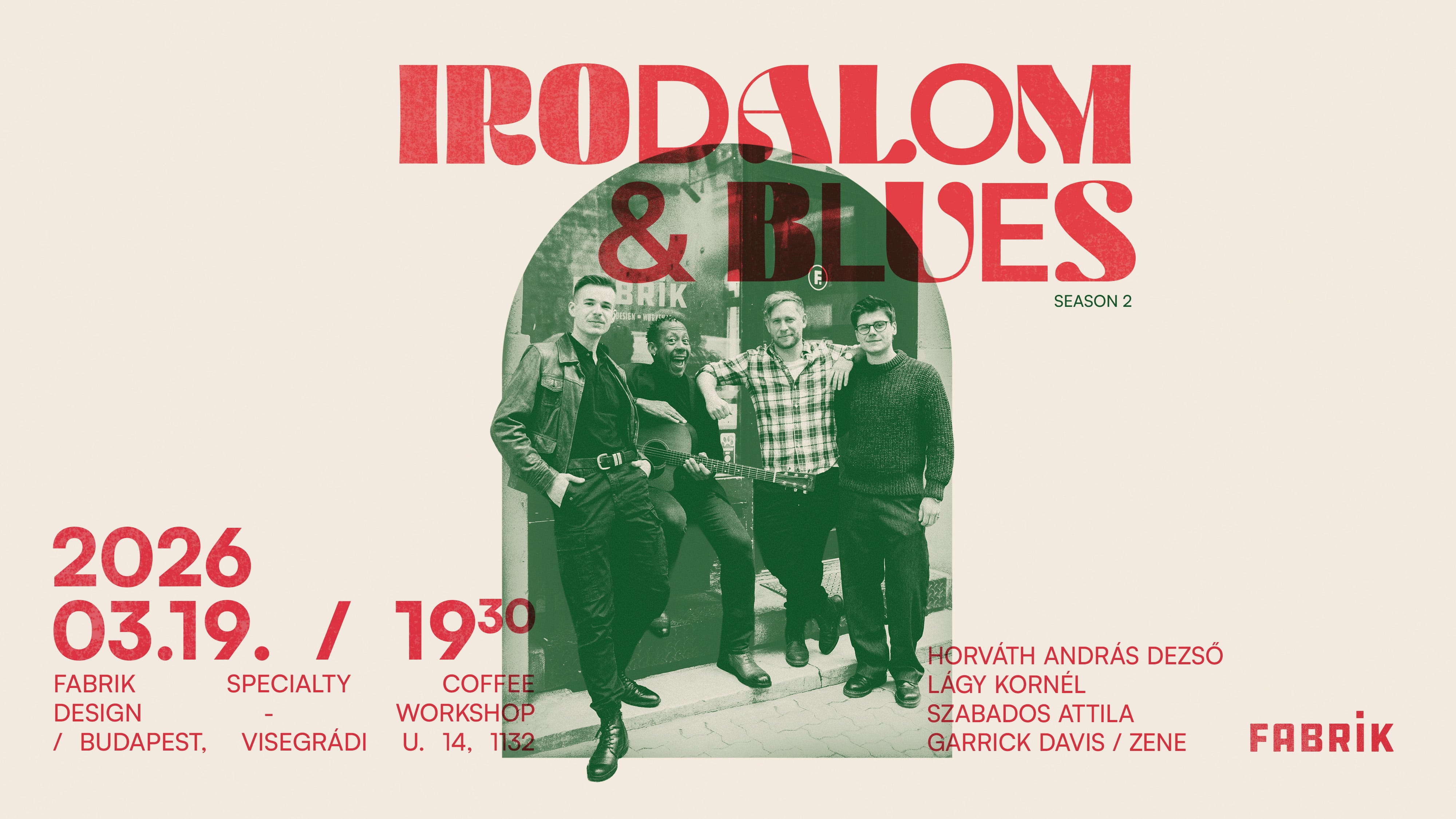 Három szerző és egy bluesgitáros – Horváth András Dezső, Lágy Kornél, Szabados Attila és Garrick Davis zenés irodalmi estjére március 19-én kerítünk sort, 19.30-tól.
